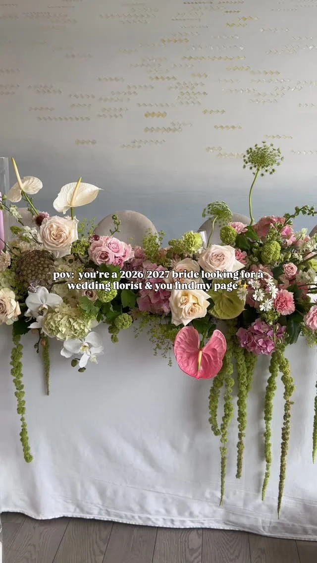 We design florals for weddings and events rooted in a romantic, organic, and modern style. Our work leans into colourful palettes, layered textures, and natural movement, allowing each design to feel intentional yet effortless. Every piece is thoughtfully crafted to reflect your vision and the feeling you want to evoke.